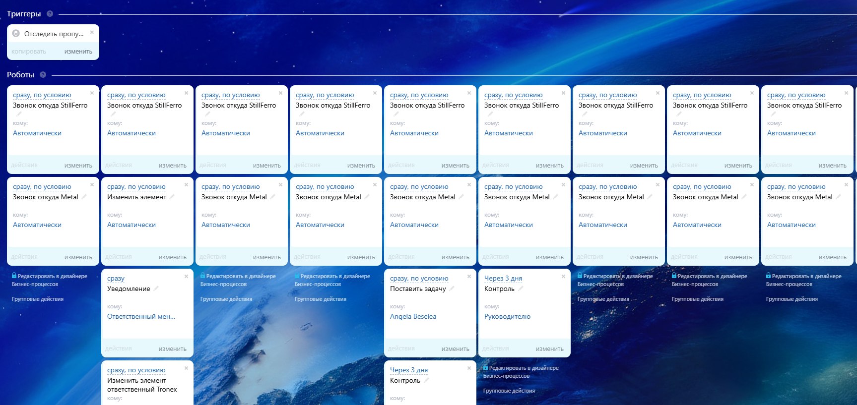 Когда триггер обнаруживает необходимое событие, он автоматически перемещает элемент CRM на следующую стадию или инициирует другой робот.